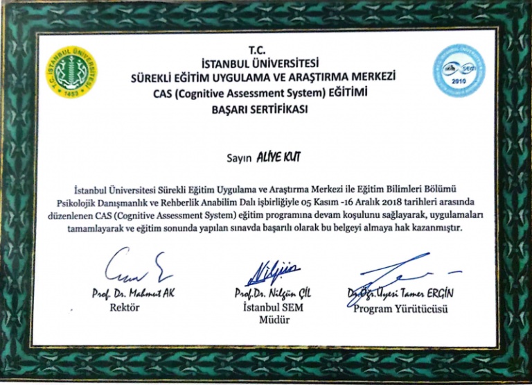 - CAS Zeka Testi / 5-17 Yaş (İstanbul Üniversitesi Sürekli Araştırma Merkezi Dr. Öğr. Üyesi Tamer ERGİN)