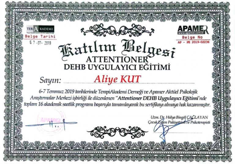 – Attentioner Dikkat Programı (Apamer Psikoloji Doç. Dr. Psikiyatrist Hülya Bingöl)